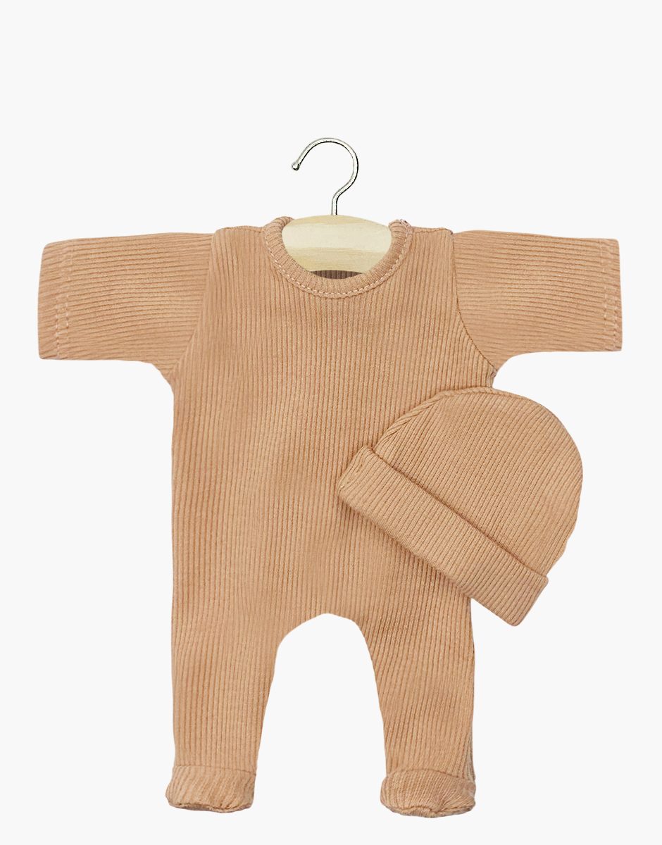 Dors bien Ange et son bonnet en bord côte pour poupées et poupons Minikane Babies 28cm.