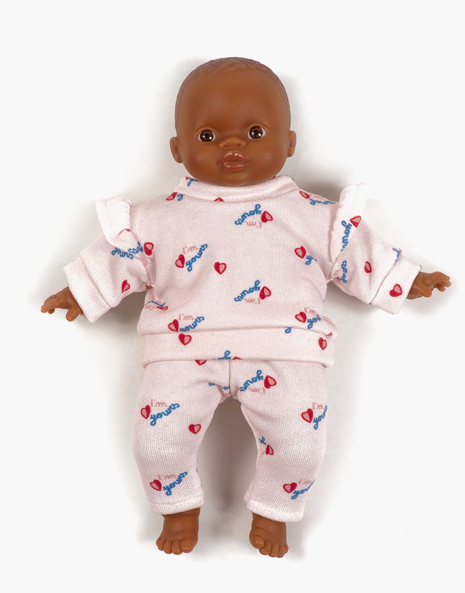 Ensemble Liliane en molleton et son headband à noeud rond pour poupées et poupons Minikane Babies 28cm.