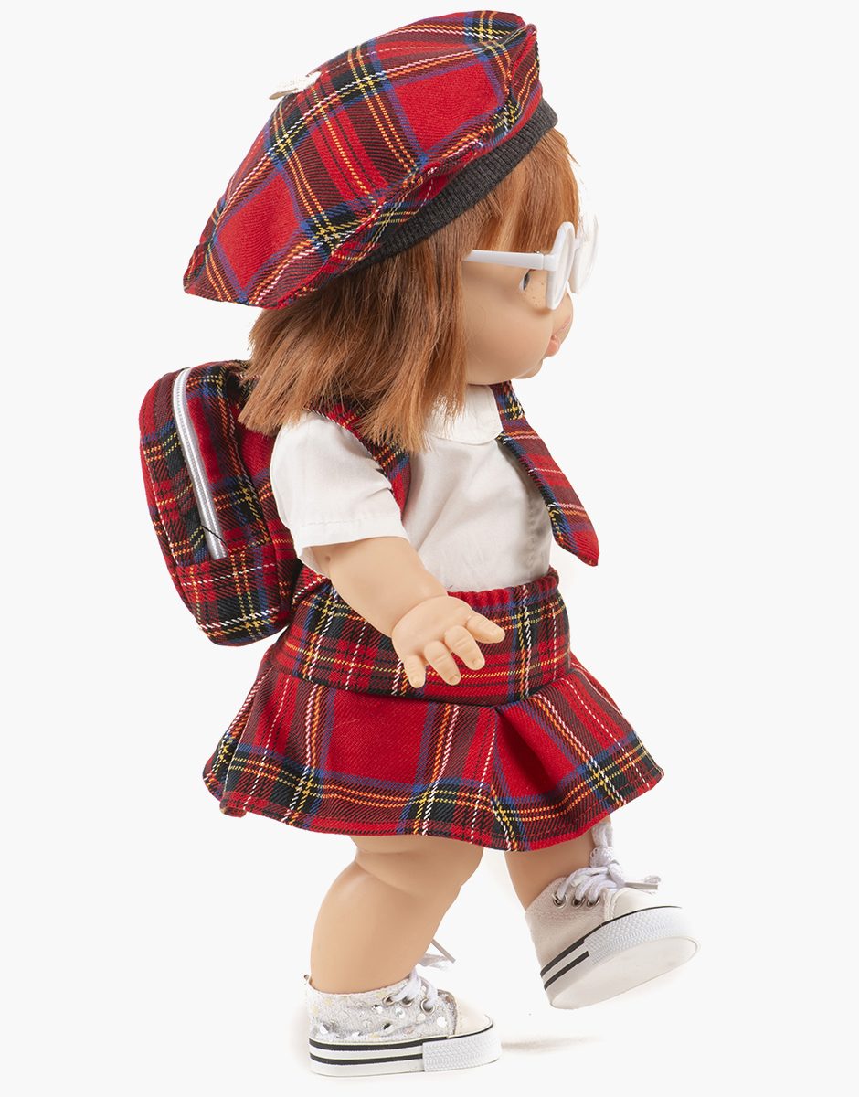 Béret Ava en tissu à carreaux Tartan pour poupées et poupons Minikane Gordis 34 & 37cm.
