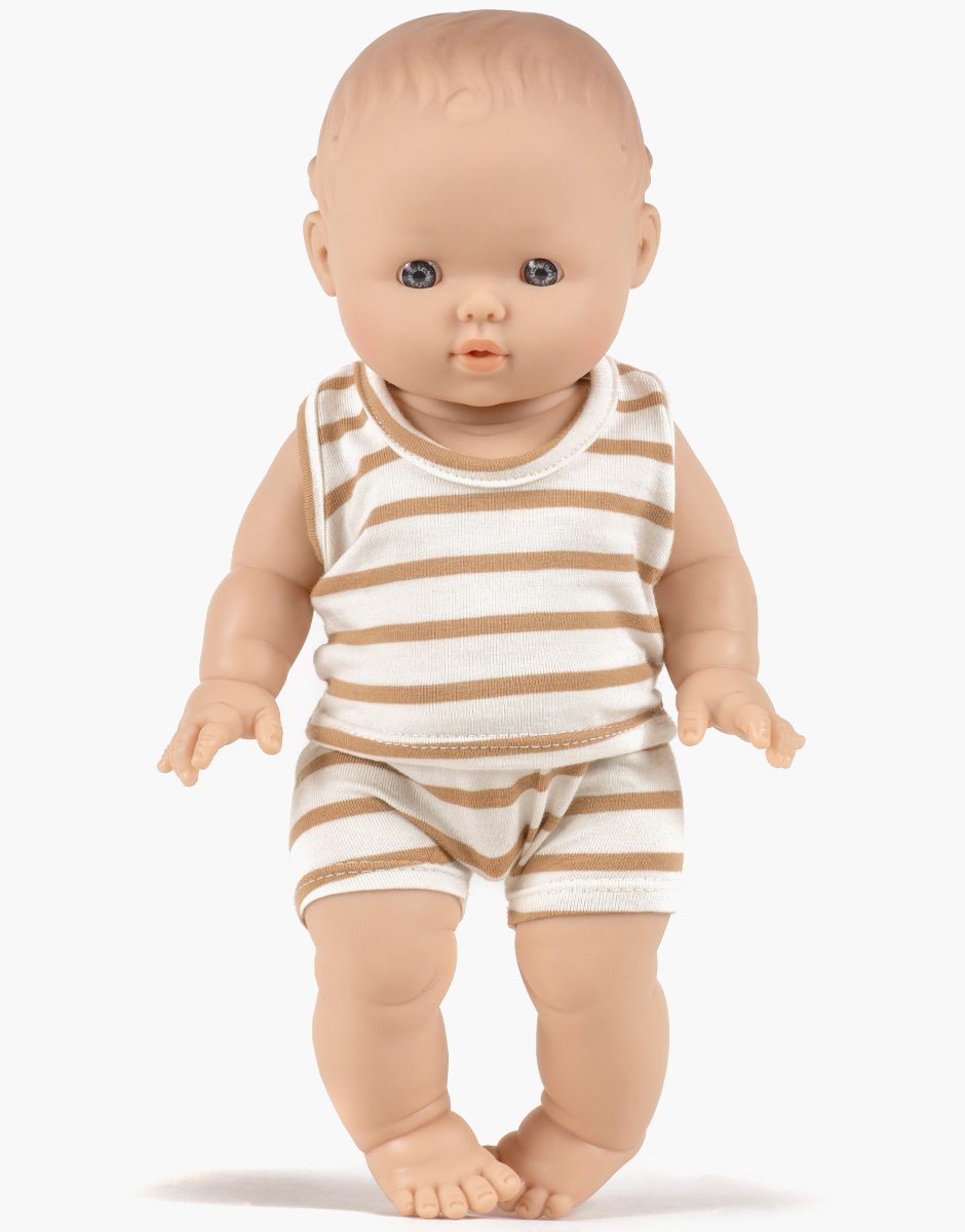 César et son ensemble Marcel en jersey rayures cassonade