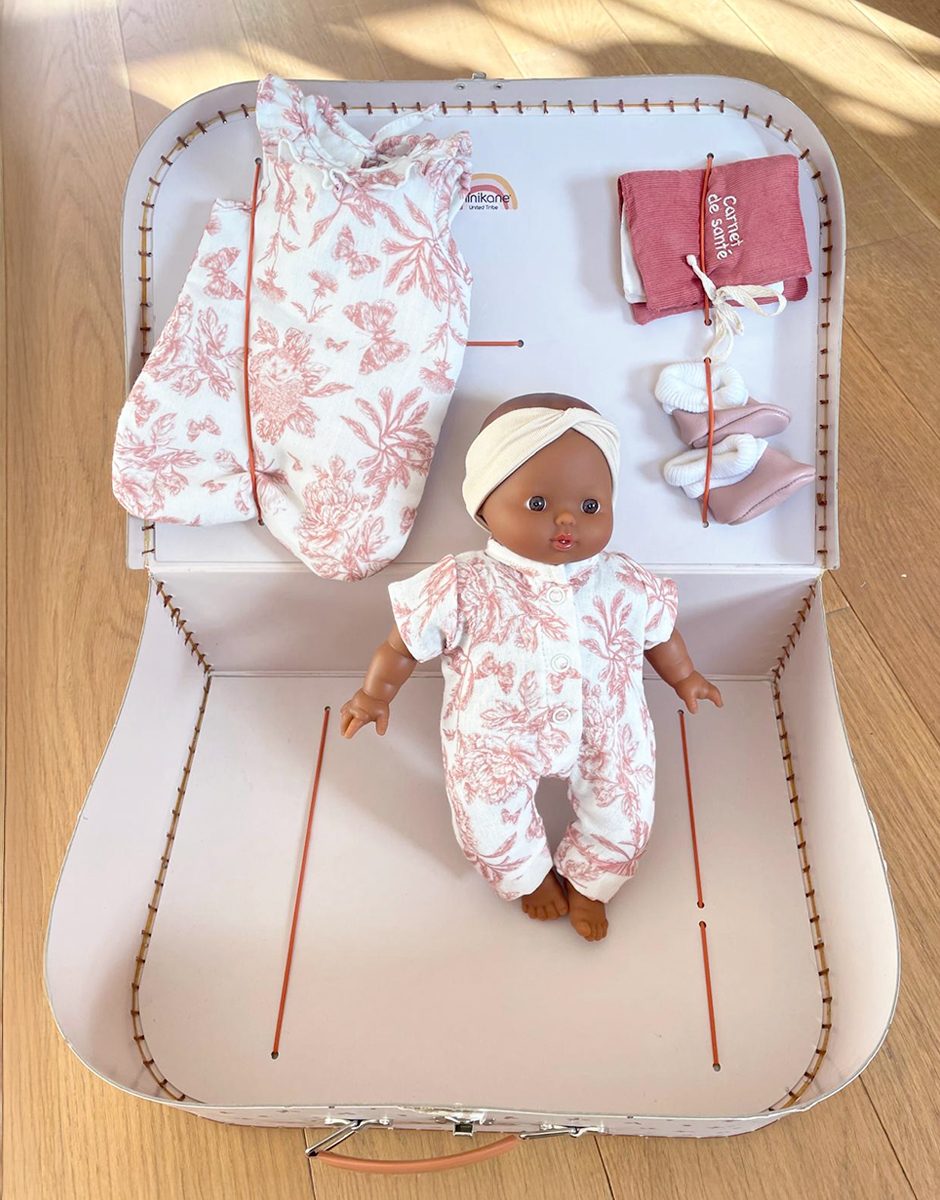 Poupée Babies 28cm Sidonie dans sa Valise d’antan Kit de Naissance Minikane X Tartine et chocolat.