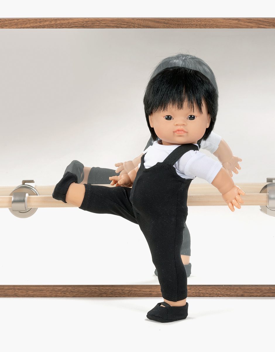 Ensemble de danse avec justaucorps Hugo en lycra brillant et t-shirt en jersey pour poupées et poupons Minikane Gordis 34 & 37cm.