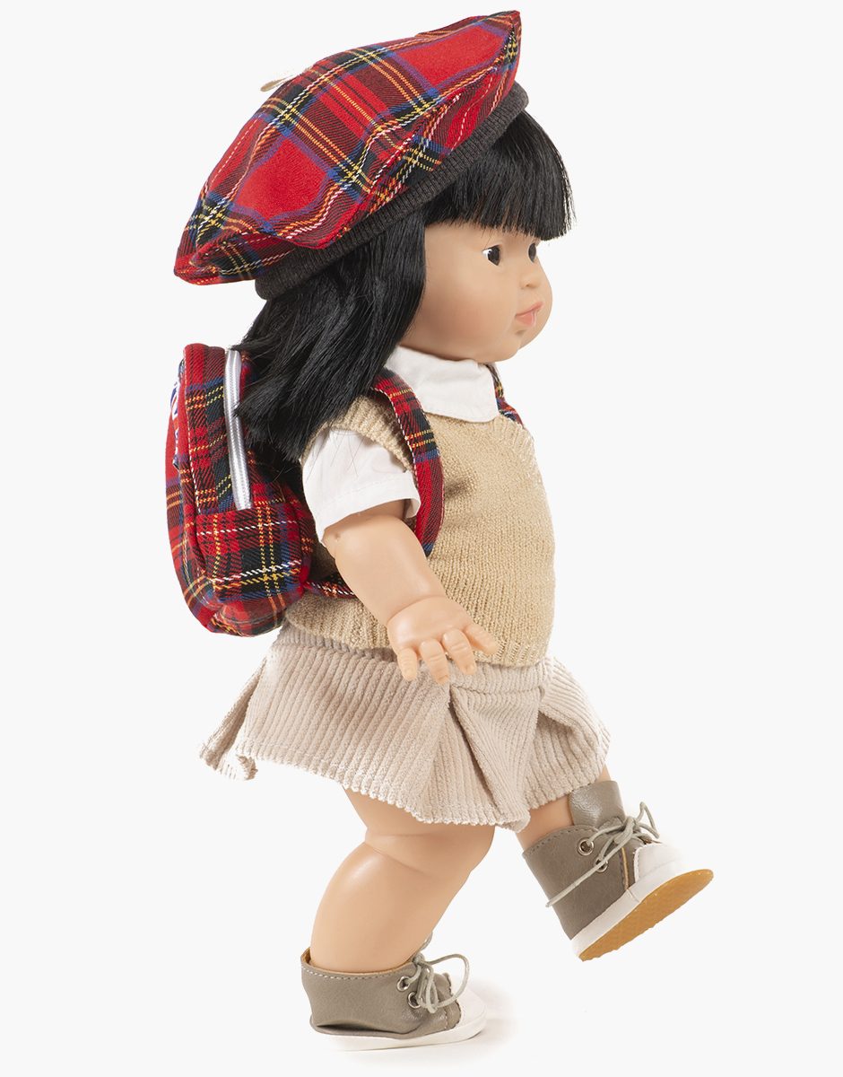 Sac à dos Théo pour poupée à carreaux Tartan écru