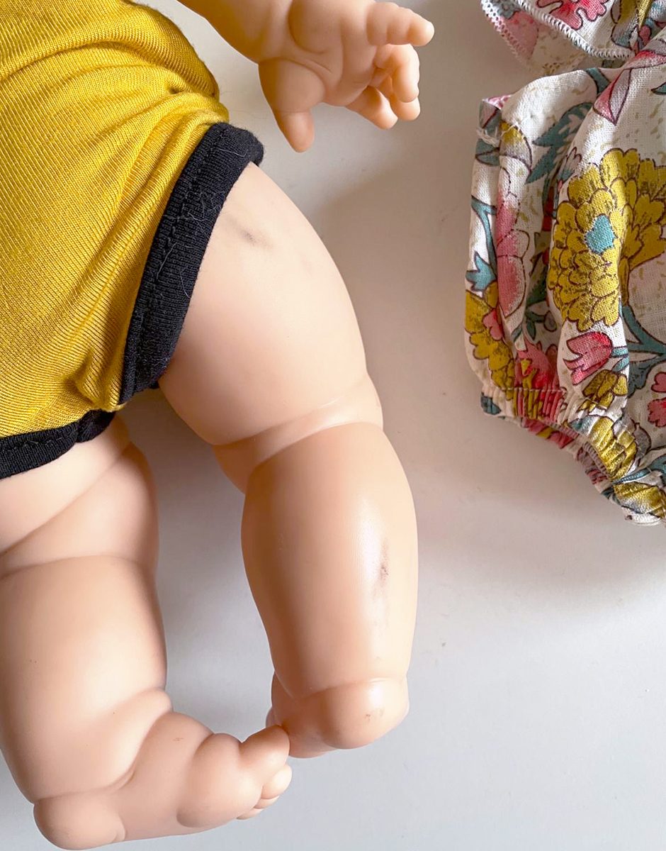 Défauts : Retours de showroom, présence de tâches sur le corps de la poupée.